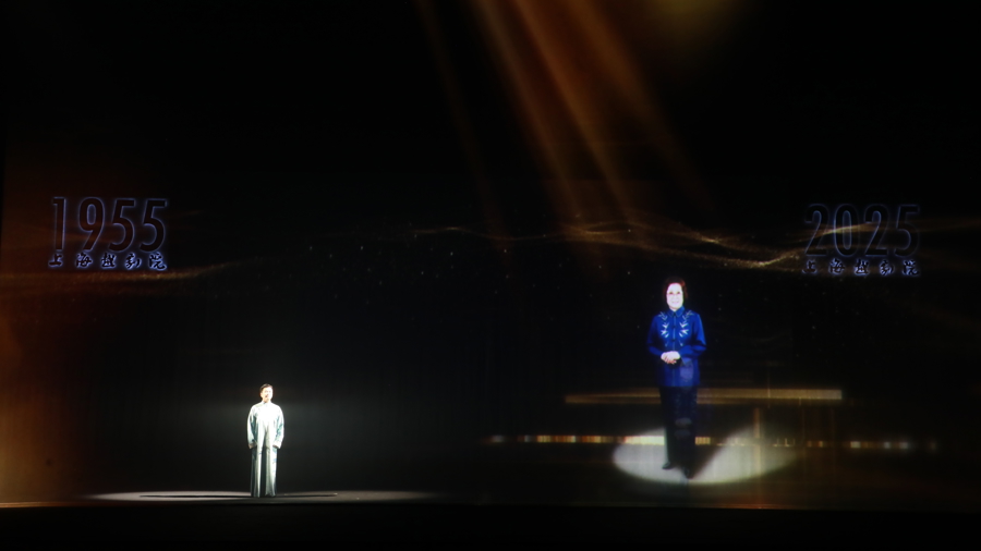 “只有坚定地走自己的路,我们的文化艺术才能健康发展,才能不辜负人民的期望和时代赋予的神圣使命。”在上海越剧院首任院长、越剧宗师袁雪芬与众越剧姐妹的全息影像中,“守·望——上海越剧院建院70周年主题演出”10月3日晚在宛平剧院落下帷幕。晚会由序“寻·梦”、尾声“守·望”和“聚是一轮月,清辉洒碧宇”“巨海纳百川,麟阁多才贤”“回首辉煌路,未来更可期”三个篇章构成。单仰萍、方亚芬、赵志刚、章瑞虹、王志萍、钱惠丽依次担任主述人,分别与全息影像的袁雪芬、尹桂芳、范瑞娟、傅全香、徐玉兰等进行隔空对话,中生代与青年演员带来了流派纷呈的经典唱段。