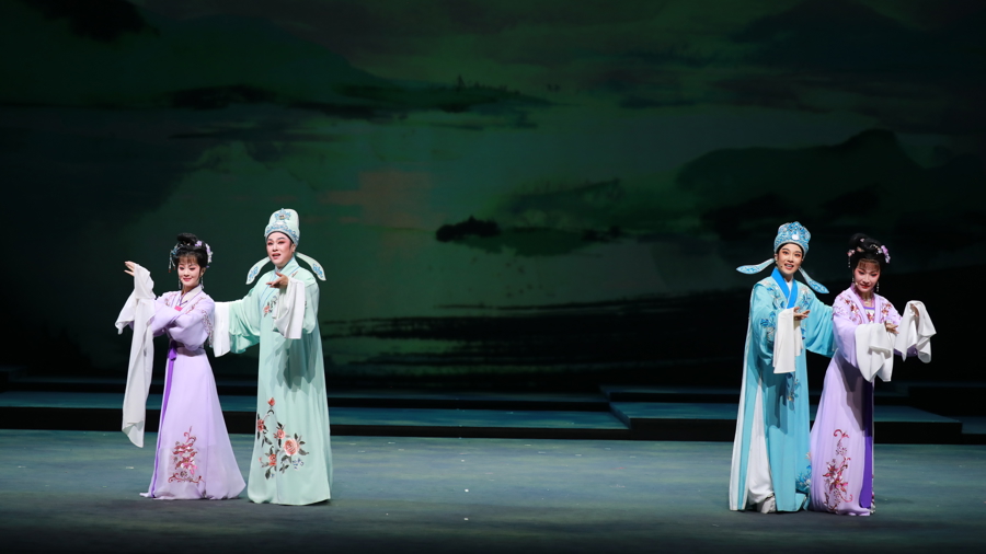 晚会在“舞台姐妹”与“山河恋”的讲述中展开第一篇章。1947年,越剧十姐妹联合义演《山河恋》,反响轰动,成为越剧发展史上的重大标志事件。田汉为此撰文《团结就是力量》,称此事促进了越剧姐妹的觉醒和团结。至此,联合与团结成为越剧精神的代名词。