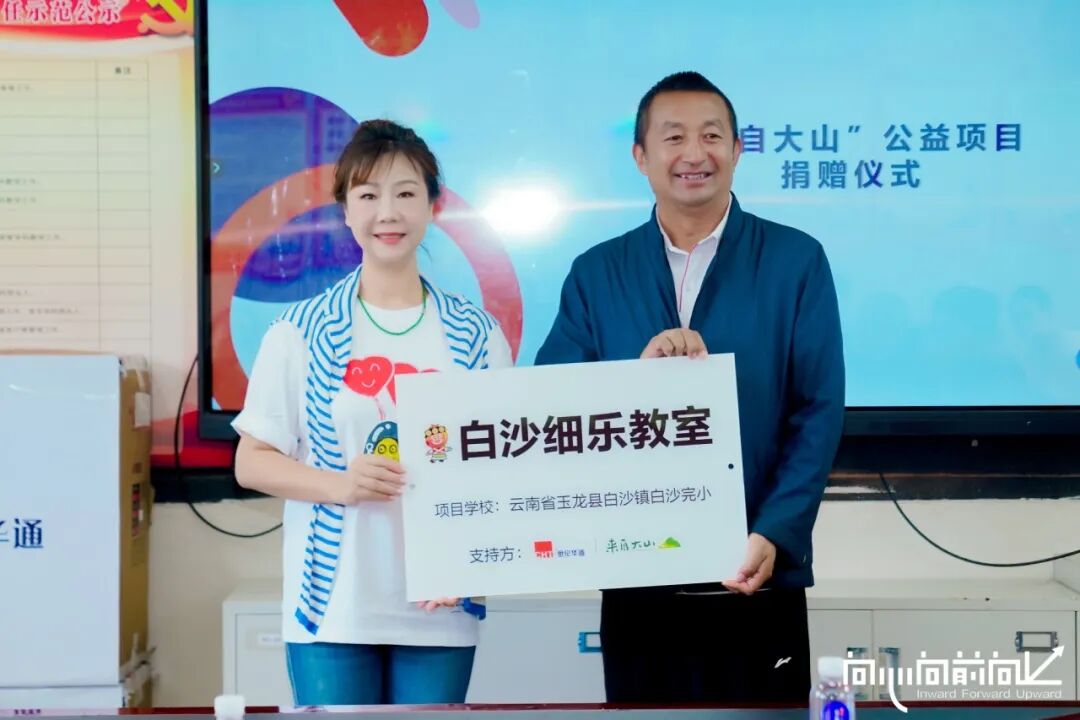 活动首日,高管团队在总裁谢斐的带领下,赴丽江市玉龙纳西族自治县白沙中心完小开展“来自大山”公益探访暨捐赠活动。白沙完小是一所以纳西族孩子为主的少数民族学校,学校毗连白沙壁画,背靠玉龙雪山,地处纳西族故都,是东巴文化的发源地。该地区曾是纳西族政治、经济和文化的核心地带,先民在此创造出灿烂的民族文化,留下了东巴文字、传统歌舞、民俗技艺等数不胜数的文化瑰宝。