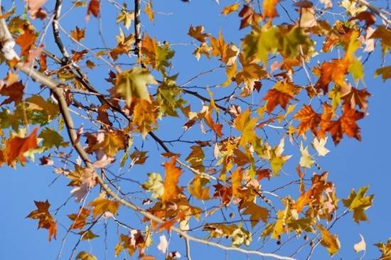 悬铃木又名法国梧桐,每当秋冬时节,它宽大的叶片就会转为深黄、褐黄色。